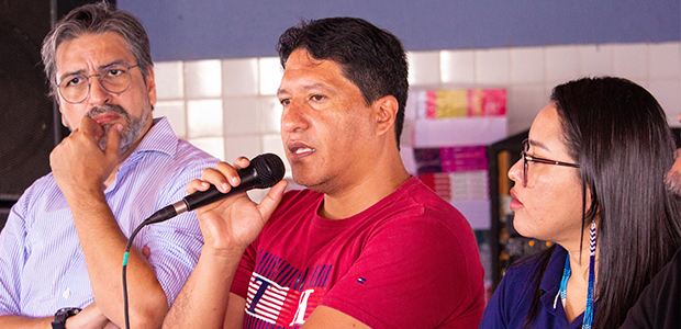 Falando sobre a cidadania indígena e a importância do engajamento das minorias no processo eleitoral, o superintendente de Políticas Públicas para os Povos Originários de Alagoas, Maynami Apoinme, iniciou os trabalhos com os estudantes entre 15 e 18 anos.